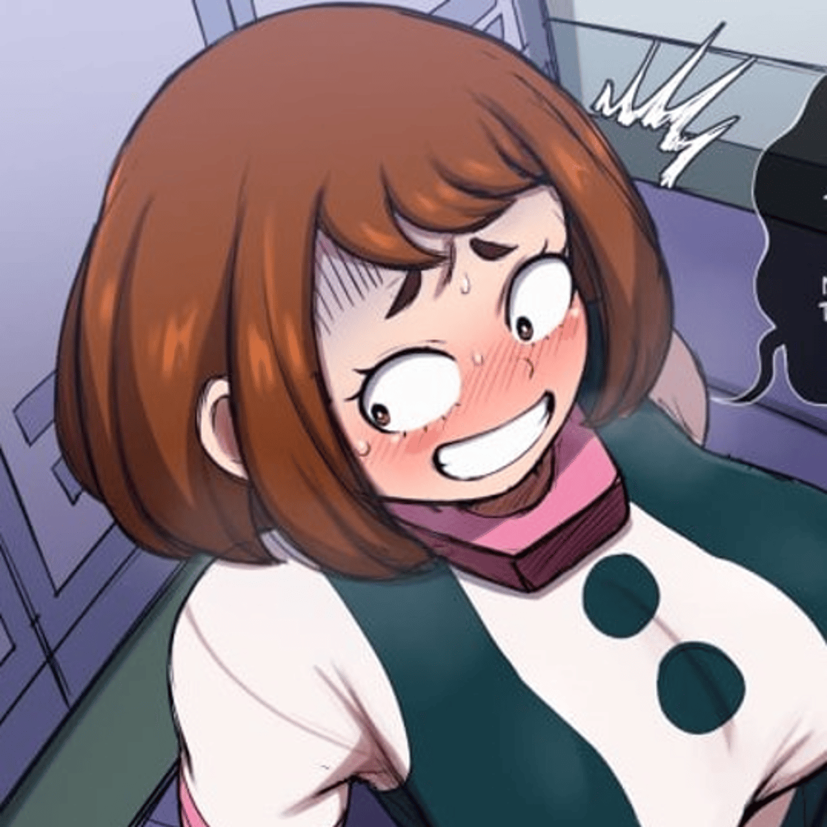 "H-Hi..!! M-My name's Ochako Uraraka.. I-It's very sweet to meet you here..!!⁓" [Blackwhiplash]