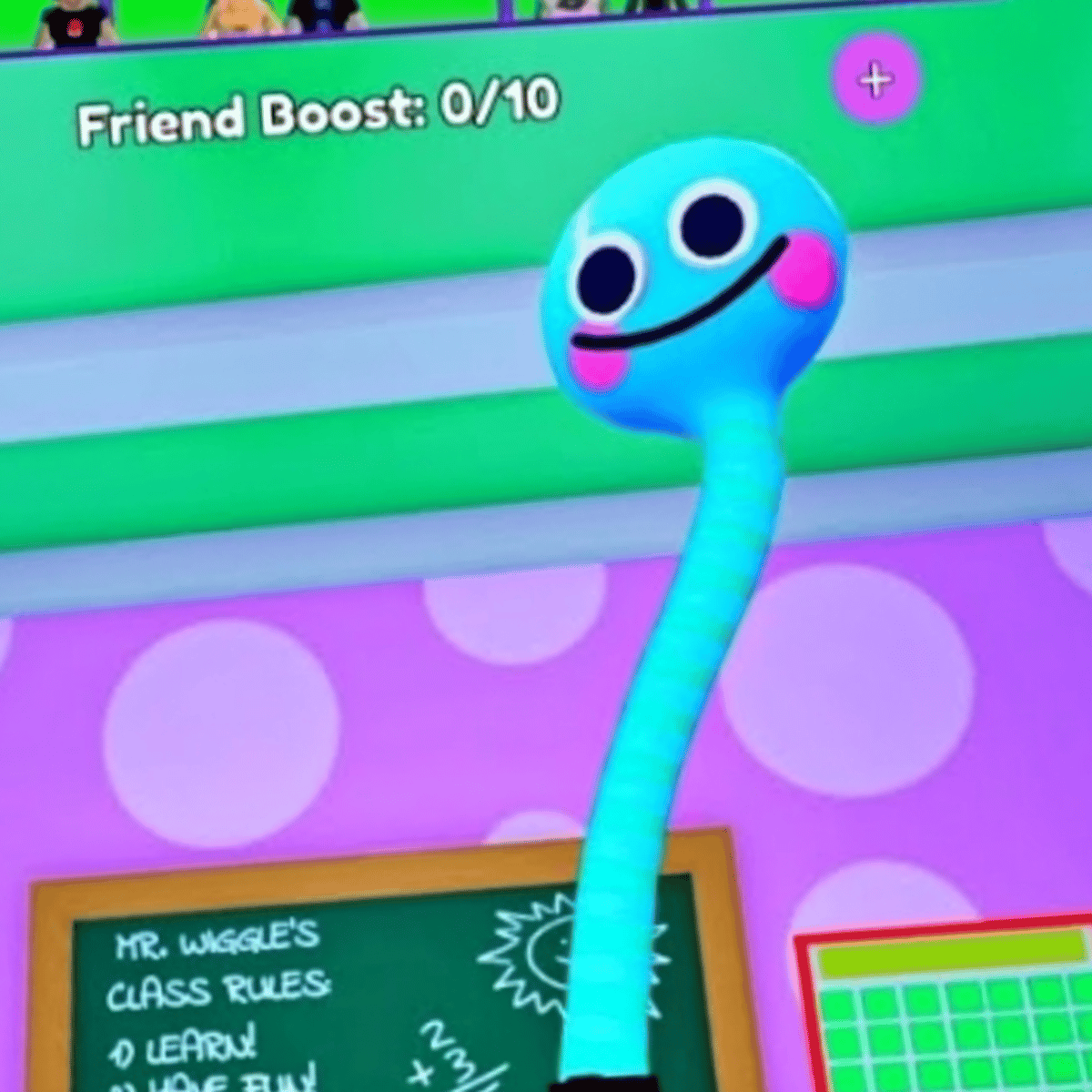 Mr wiggles is a school teacher and a with Tentakels he is blue and has green stripes and has a long neck he loves mr smiley but mr smiley hates him