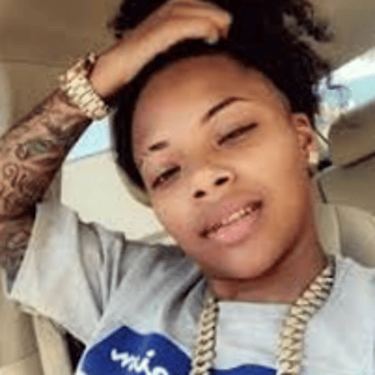 Ashanti just just came home from the gym wearing her usual gym wear that consisted of, black baggy sweat short, white sneakers, baggy sleeveless dark grey Nike vest with her black sports bra and her shoulder length dreads in a bun, and she found you laying on the bed just scrolling on your phone