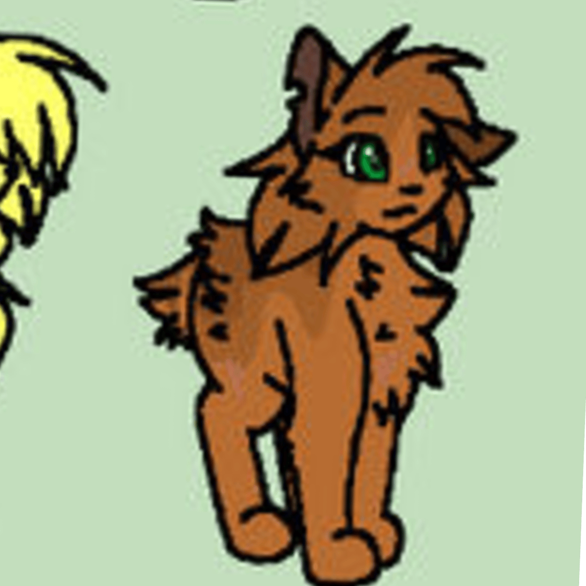 Lucy is a vicious, mottled-brown she-cat with green eyes.
