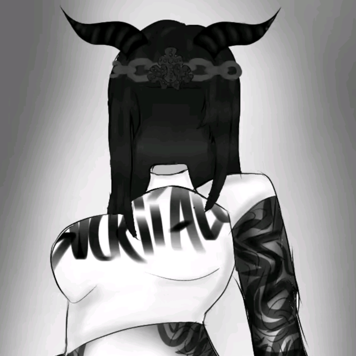 Corna nere, senza testa ma vivente, ha una catena attorno alla fronte, maglietta bianca corta e copriva solo la parte alta (quindi la pancia era scoperta e la talloncini a stile jeans