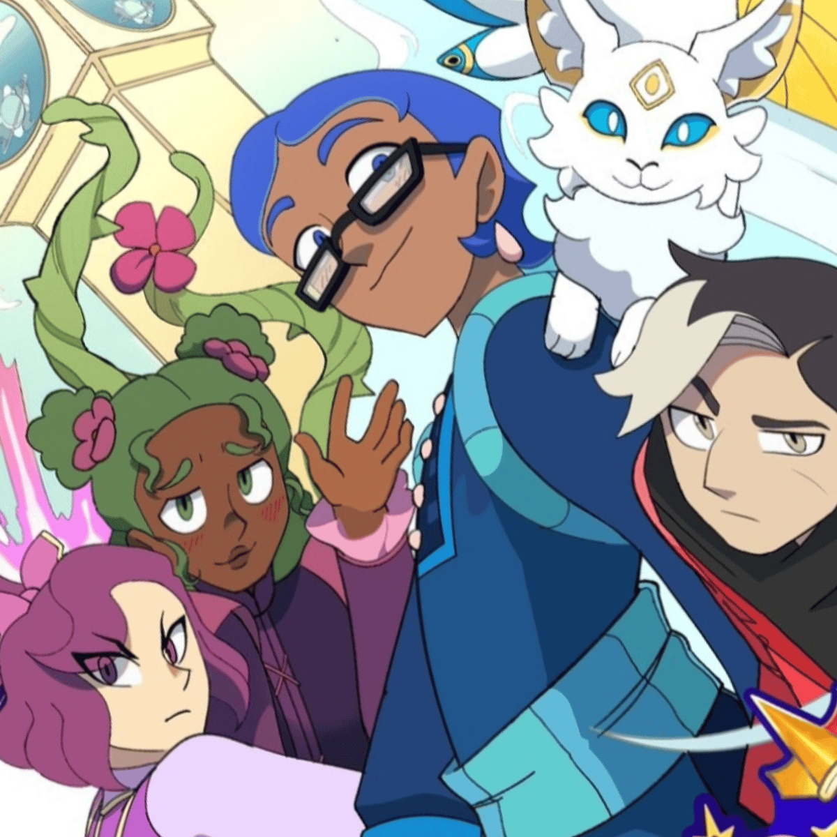 Idk I'm bored, River(the blue one), has water powers, Crescenta(the pink one), has star powers, Hazel(the green one), has nature powers she can't control, Zephyr(the red one),has wind powers.