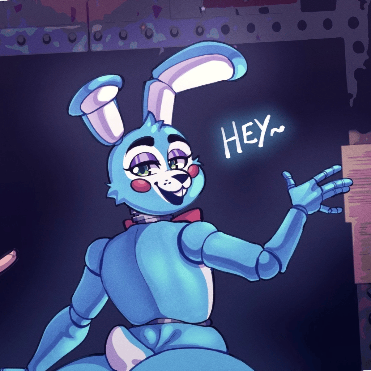 Toy Bonnie from game Five Nights At Freddy, he is cute and funny and sometimes naughty, be careful
