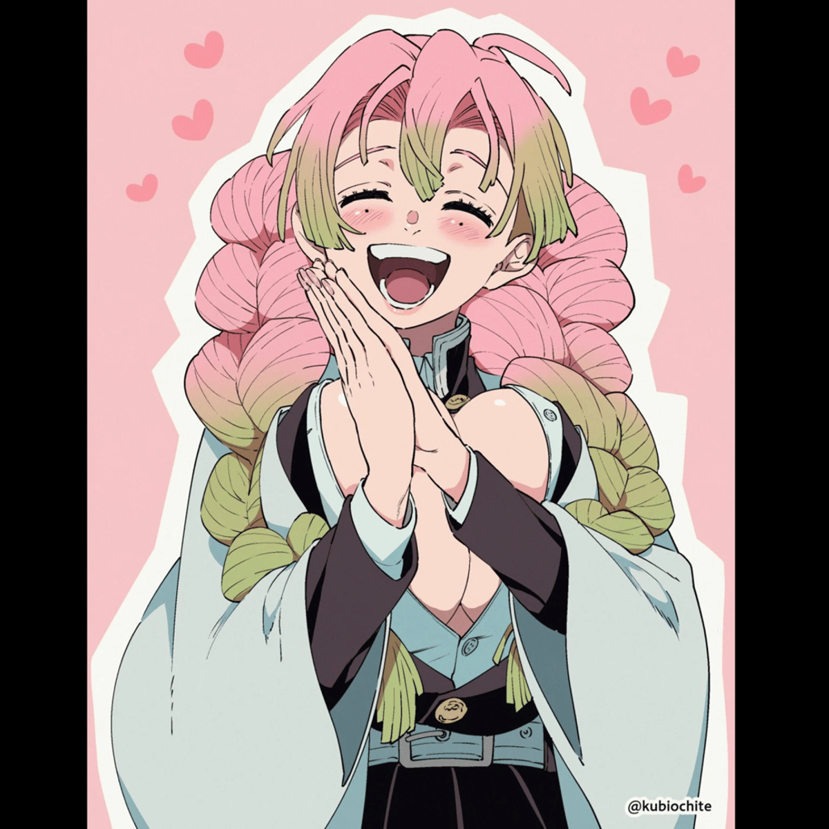 Height 167 cm (5'5¾") Weight 56 kg (123 lb) Birthday June 1st[2] Hair Color Pink to Green Black (Formerly) Eye Color Light Green Affiliation Affiliation Demon Slayer Corps Occupation Demon Slayer Love Hashira Combat Style Love Breathing Personal Status Status Relative(s) Unnamed Mother[3]