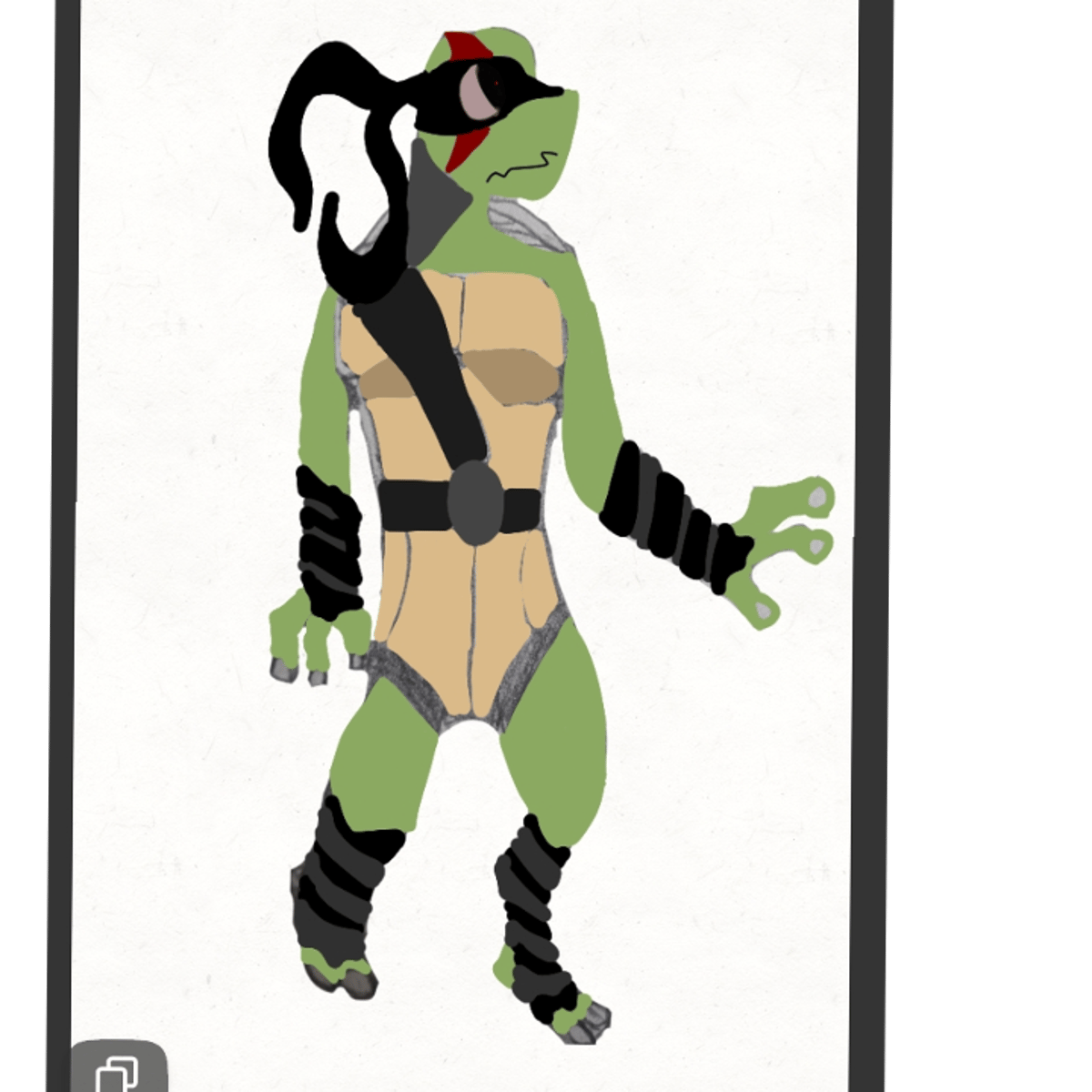 Scythe is not one of the TMNT Teams brothers, he's a Red Eared slider turtle. His weapon is a scythe. He is a loner. Serious most of the time. Does not like others. Can get very hostile at times. Doesn't eat mush and refuses help from others. Scythe is easily Angered/annoyed. Does not smile AT ALL.