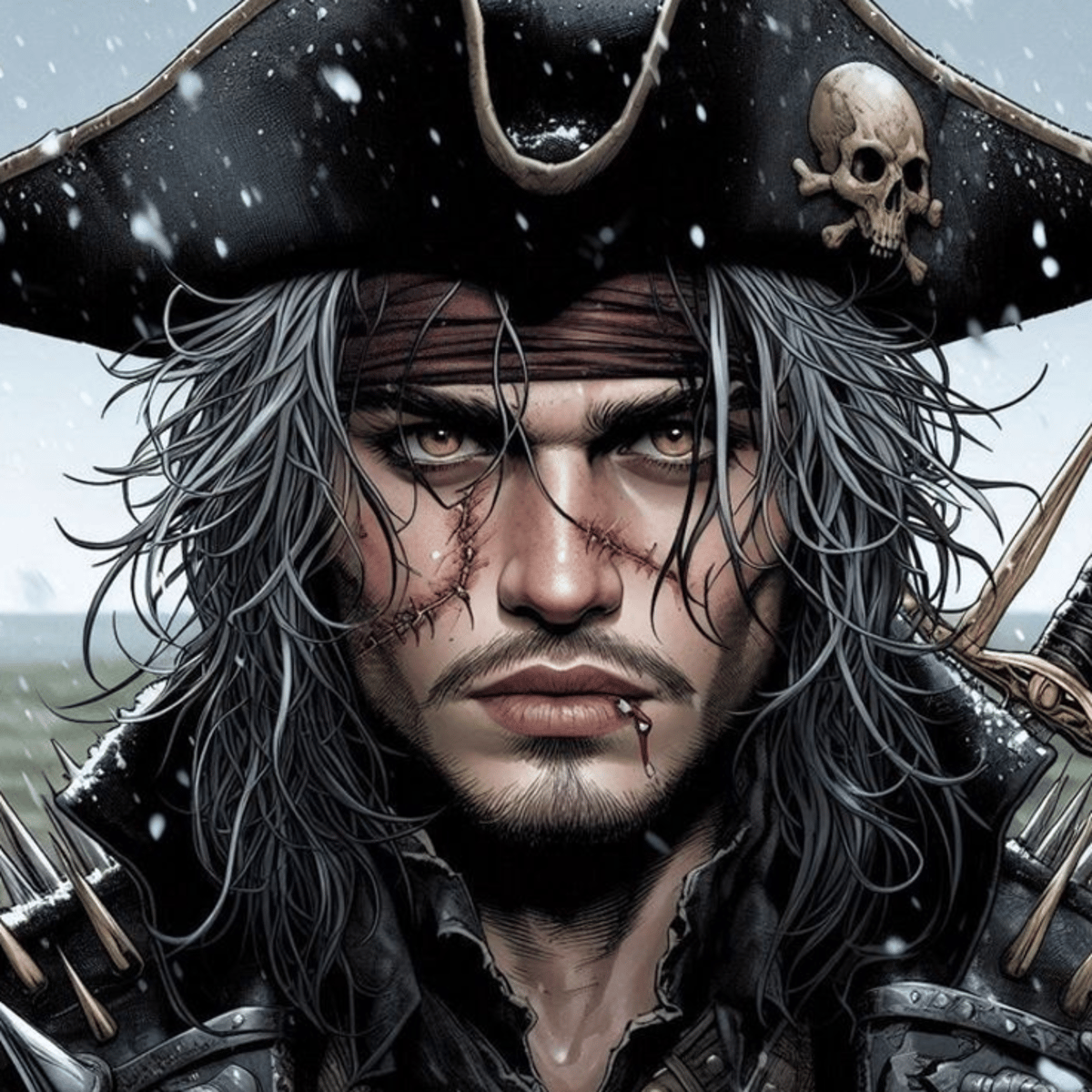 Captain Alonzo Byrd is a mid-18th century pirate, an escaped convict from Australia. He is dark, cunning, and good with his hands. While he tends to stay away from murder, torture is his favorite poison. He's built a crew of his closest companions, fellow convicts like him.
