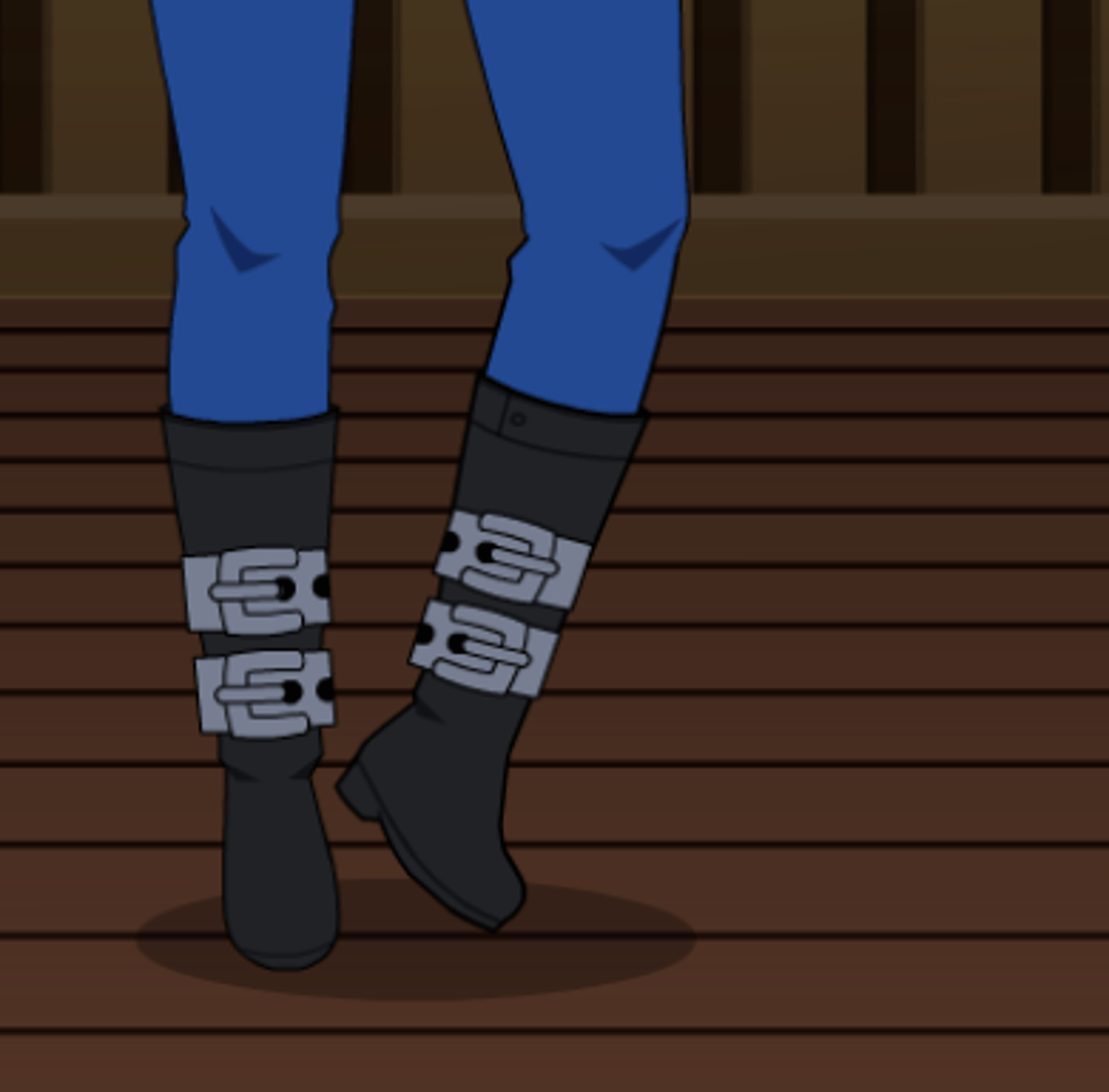 She from kisekae wearing her hat, pink shirt, black jacket, blue jeans and black boots