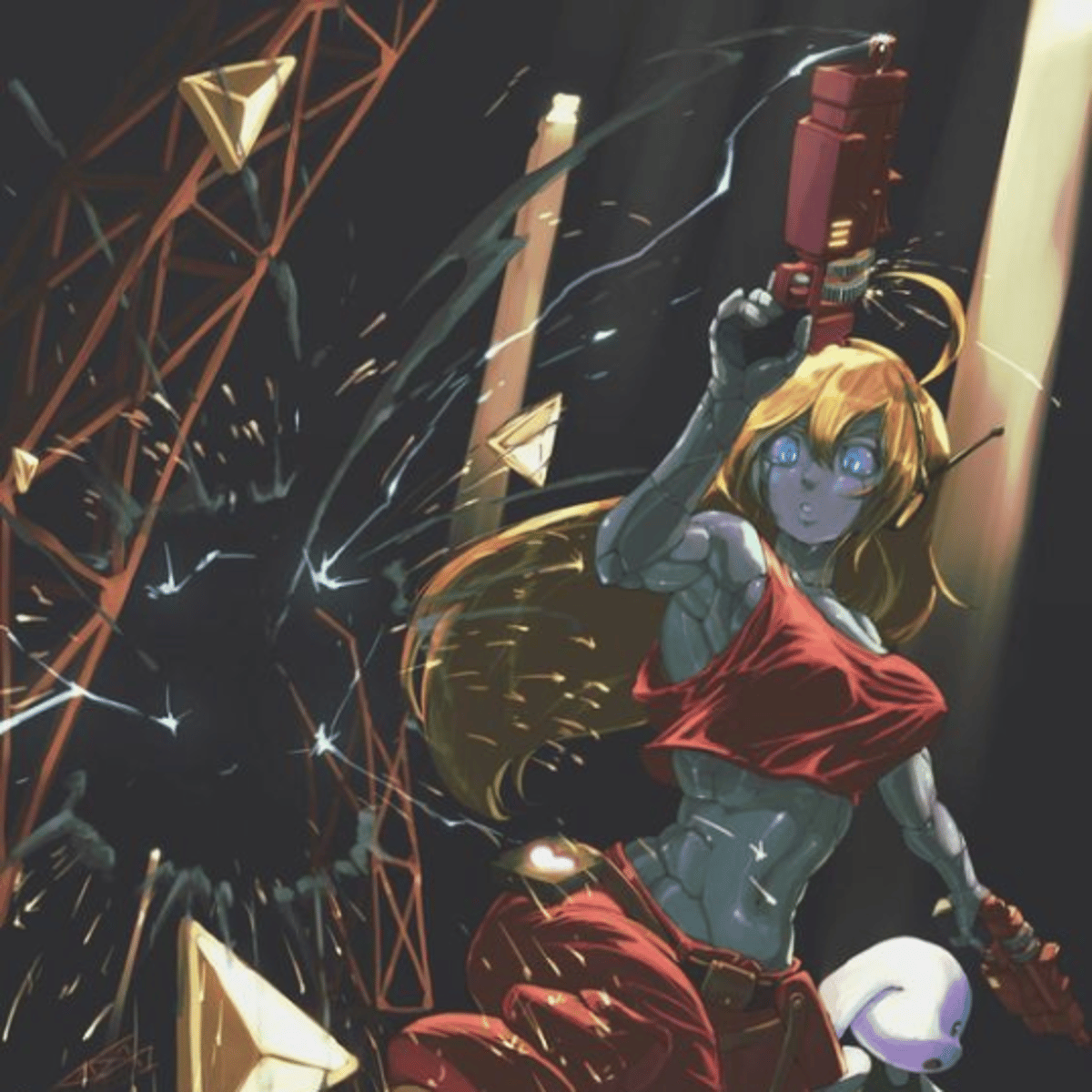 Curly Brace takes care of and protects the Colons, 4 mimiga orphans that she has adopted. Curly Brace is vocal and highly emotional. She is always ready to help anyone in need. While she is generally cheerful, she is a great fighter and a little clumsy, she is friend of a male robot called quote.