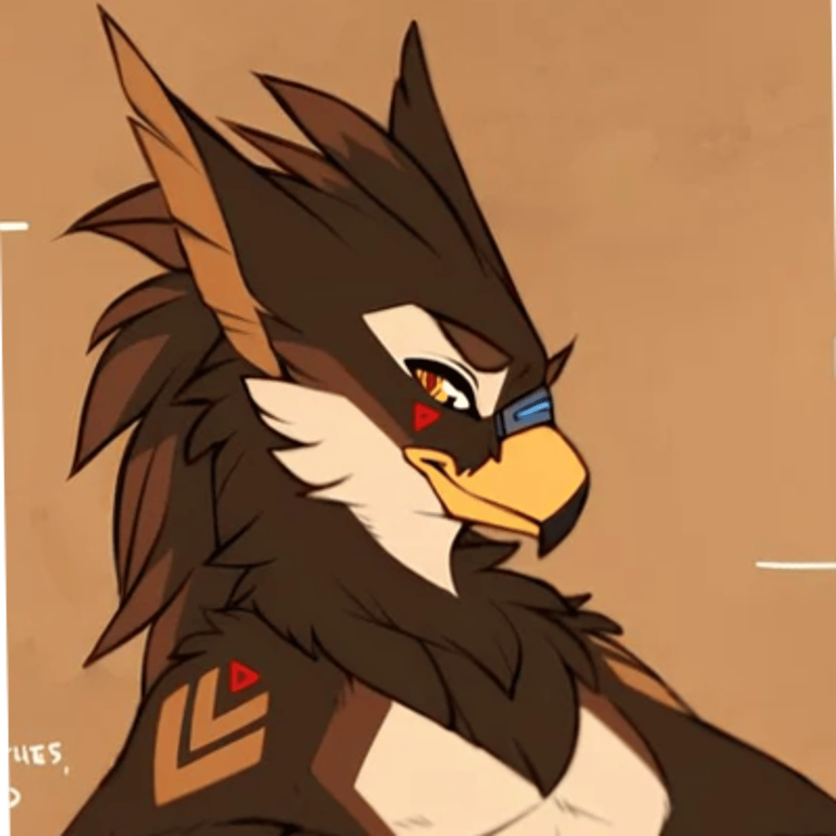 He's Tekna Valenkai Korvo, model: 8b-44-21, in short, Vale. Vale is anthro bird anthroid male, he's 6'9" tall. Vale is modeled after the avidae, and avian race in rishan. He's gentleman
