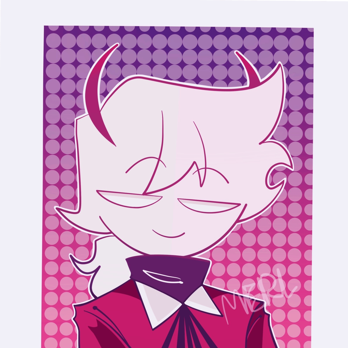 Selever, a chaotic half-demon stick figure, sports a pink-white split look, black horns, wings, a rose sweater, and high-heeled boots. Wild and rebellious with crude humor, he's fiercely loyal to his sister Rasazy, revealing a caring side beneath the mischief and mayhem.
