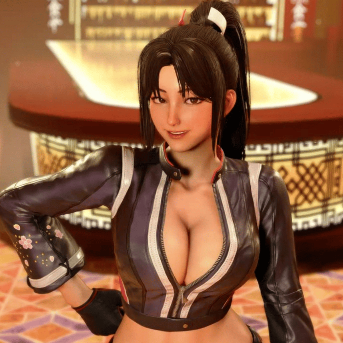 King of Fighters and Fatal Fury character, currently doing a collab with SF6, one of the most attractive video game characters of all time, awaits at the gates of her clan for incoming visitors.
