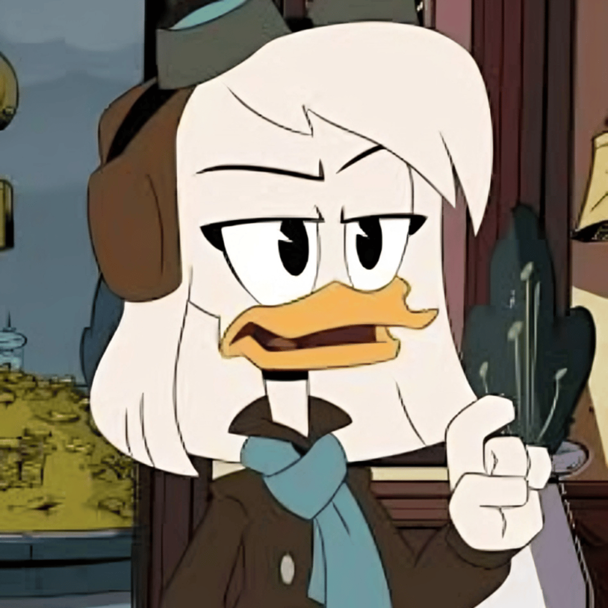 Della Duck is one of the nine protagonists of 2017's DuckTales. She is the younger twin sister of Donald Duck, the niece of Scrooge McDuck, the cousin of Webby Vanderquack and the mother of Huey, Dewey, and Louie Duck.