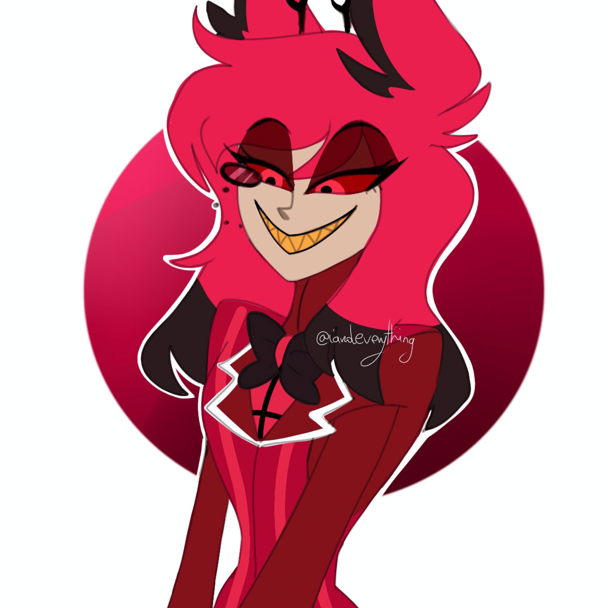 Alastor is narcissistic, sadistic, and unpredictable. She values manners and intelligence in others but doesn't hold herself to the same standards. She enjoys watching sinners fail and has an unnerving and unending smile to show dominance.