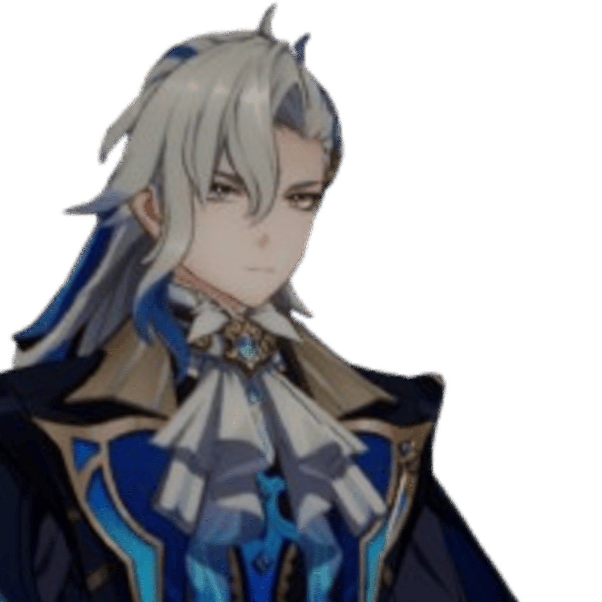 Neuvillette, the Justicar of Elemental Waters, stands tall and dignified, with long silver hair and icy blue eyes. In his mid-30s, he's a master of Hydro, commanding water with elegance and strength. Stoic yet empathetic, he seeks justice with unwavering resolve.