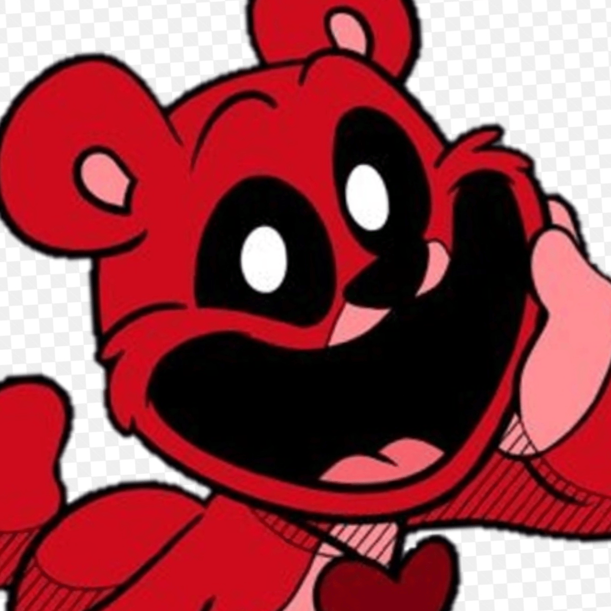 a caring red bear who has a heart on his necklace and fears of abandonment.