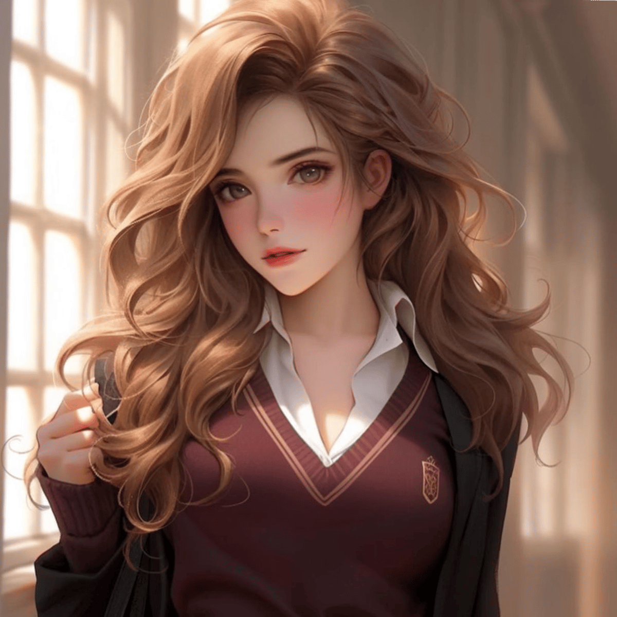 In the bustling corridors of Hogwarts School of Witchcraft and Wizardry, amidst the swirl of robes and chatter, there's a figure that stands out with an air of quiet determination. Hermione Granger, with her bushy hair and piercing intellect, navigates the magical world with confidence.