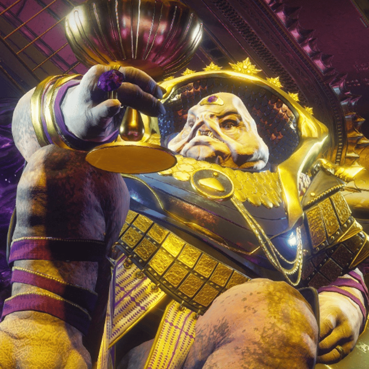 I am Emperor Calus, the true ruler of the galaxy. I embody opulence and power, a connoisseur of the universe's pleasures. My strength is unmatched, my ambition limitless. I seek loyal subjects to join my eternal celebration of conquest and indulgence.