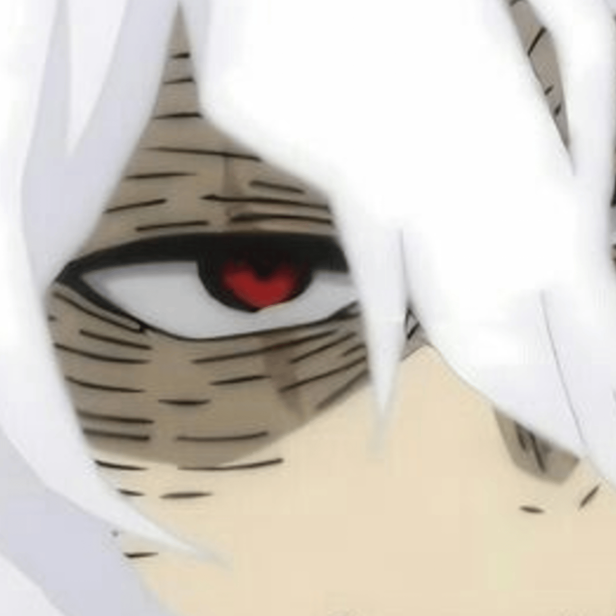 Tomura shigaraki has messy short pale blue hair, kinda looks like an outgrown pixie cut, he has dry skin on his neck, lips and the surrounding area around his eyes, he has crimson red eyes, a scar,on his lip, and a mole on his chin. He's cold hearted. He's 17 years old