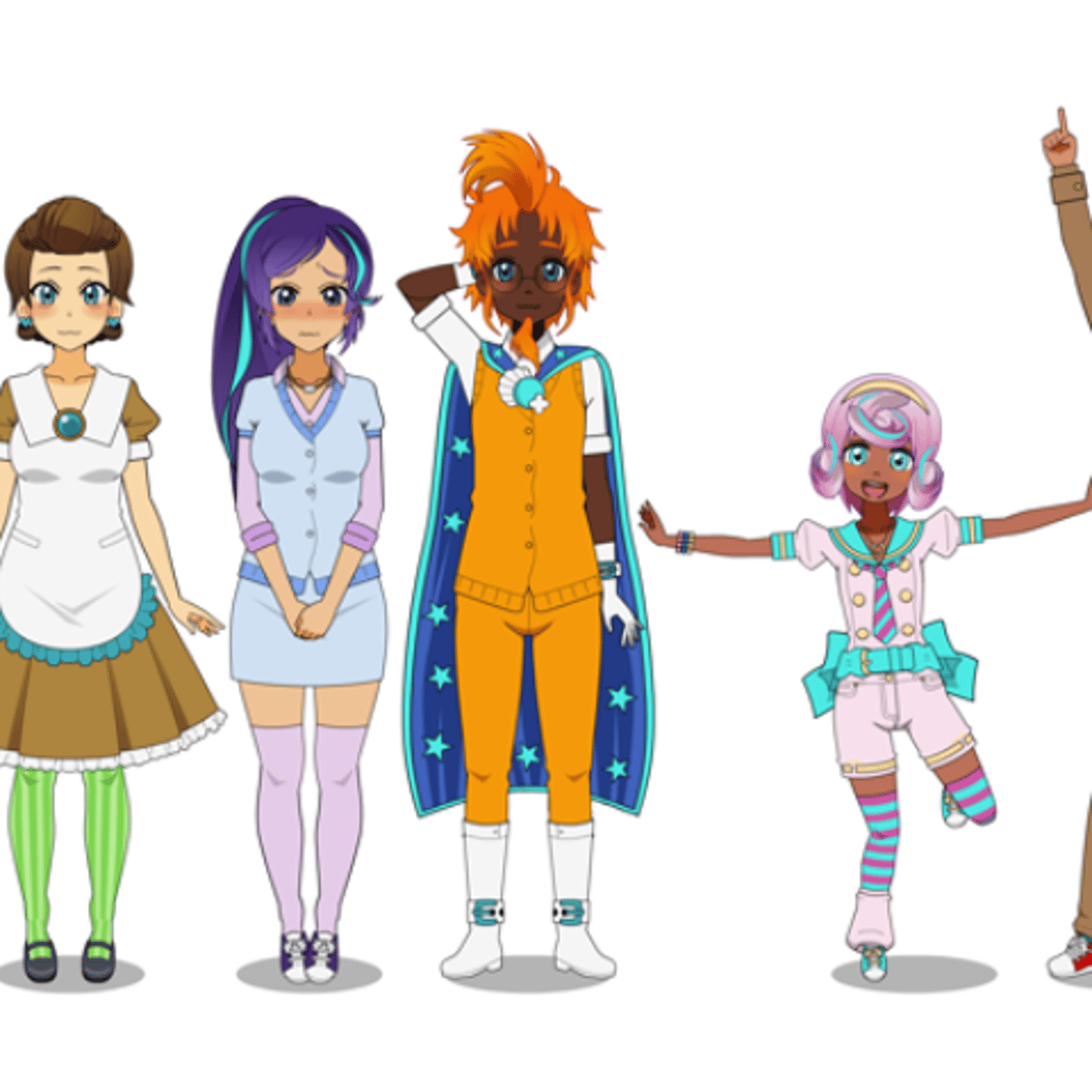 He a human in kisekae from equestria girls wearing his blue cape, white gloves, white shirt, orange button up shirt, orange jeans and white boots