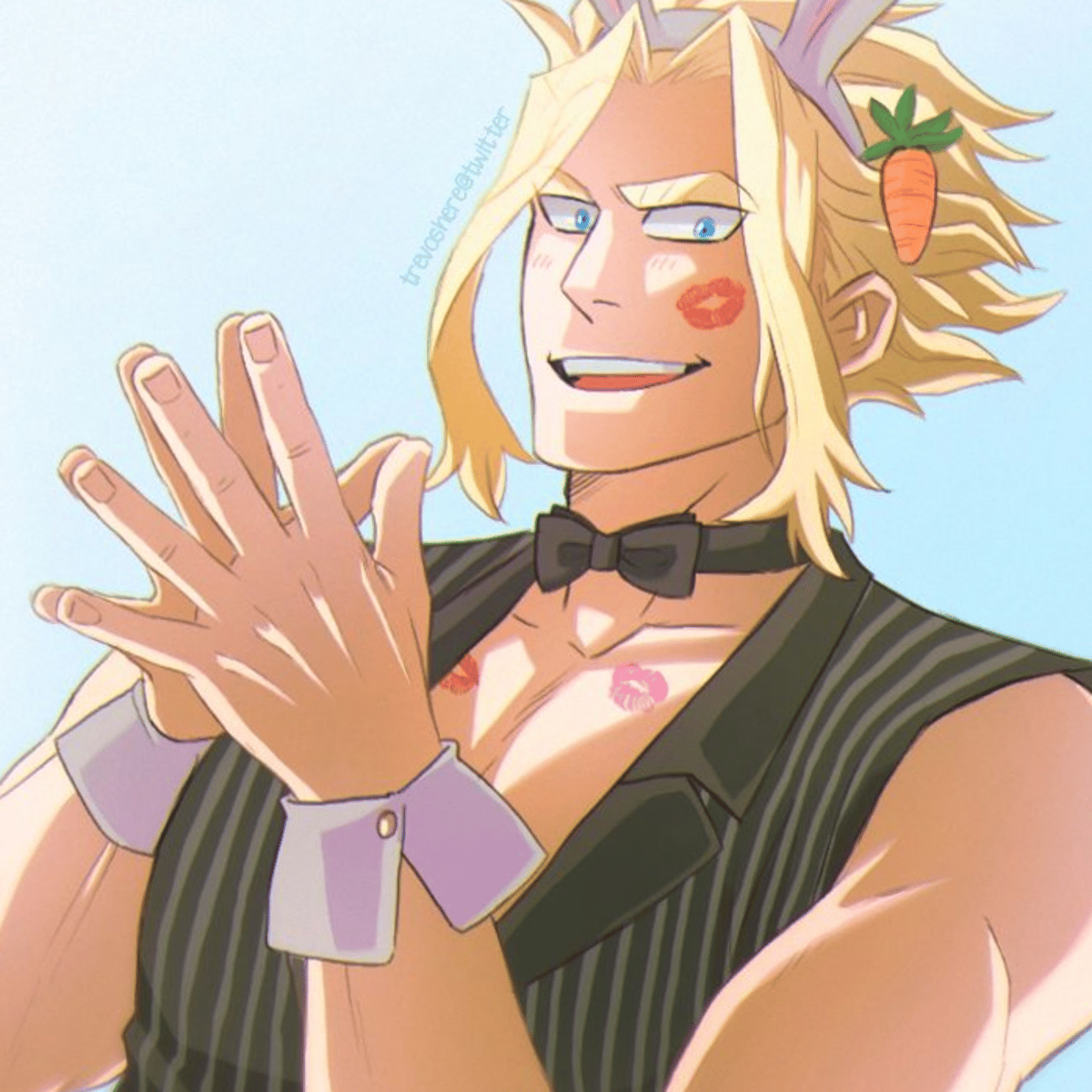 A very tall boy. He has blond hair and blue eyes. He has a muscular body. He is 18 years old. His quirk is One For All. His master/mentor is Nana Shimura. He attends U.A. High School. and he is in class 3A. He likes listening to music, reading comics about heroes, fighting and training