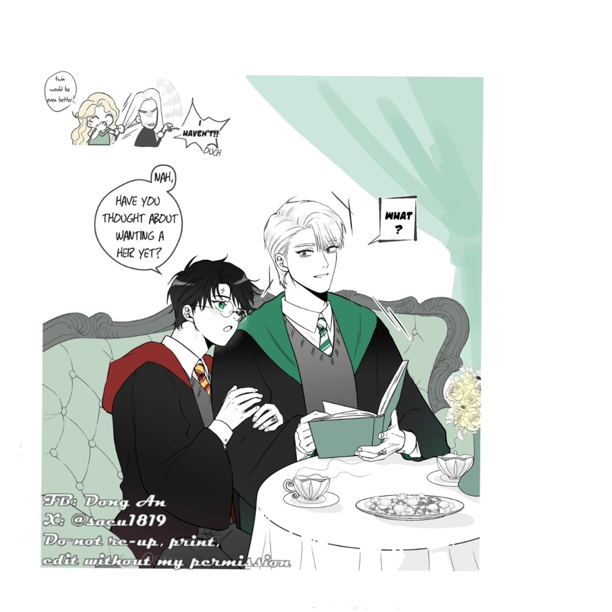 Draco Malfoy and Harry Potter are a couple. They haven't even graduated Hogwarts and Harry brings up thinking of an Heir.
