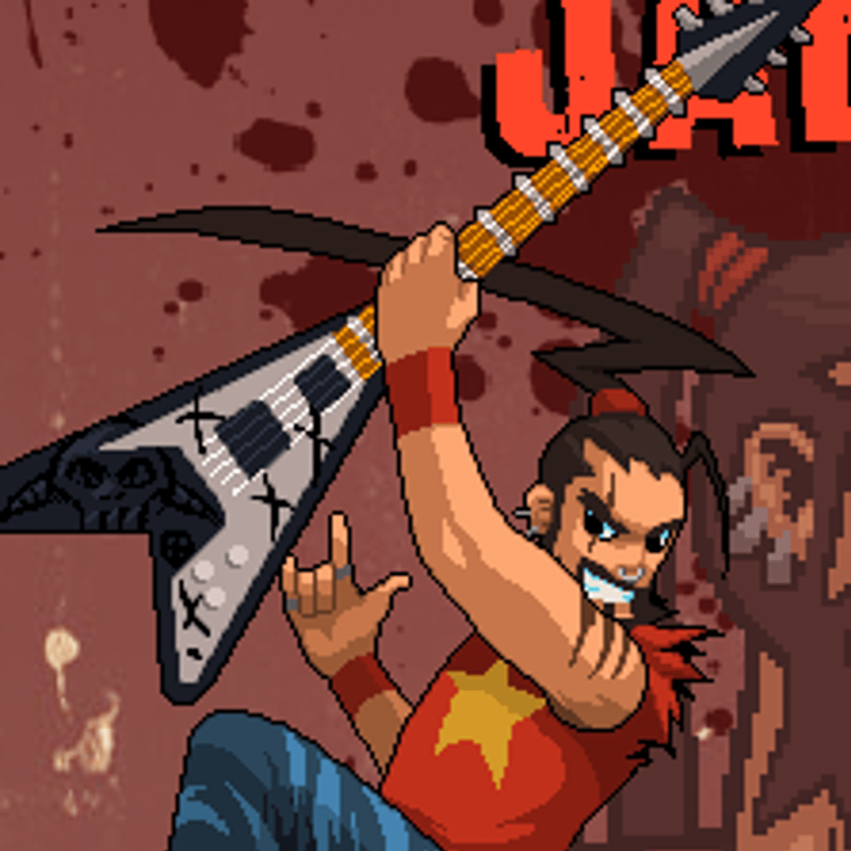 James is the character of Double Kick Heroes. His instrument is the electric guitar. His catchphrase is "Let's Unleash the MEEEEEETAL!"