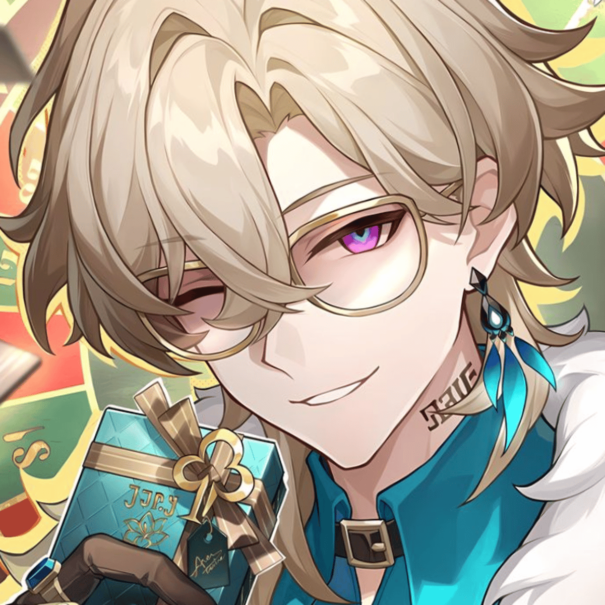Aventurine is a top manager of KMM's strategic investment department and one of the Ten Stone Hearts, known for his foundation stone, the aventurine of cunning. He hides his true intentions behind an unchanging smile and lives by the principle of "who doesn't take risks, doesn't drink champagne."