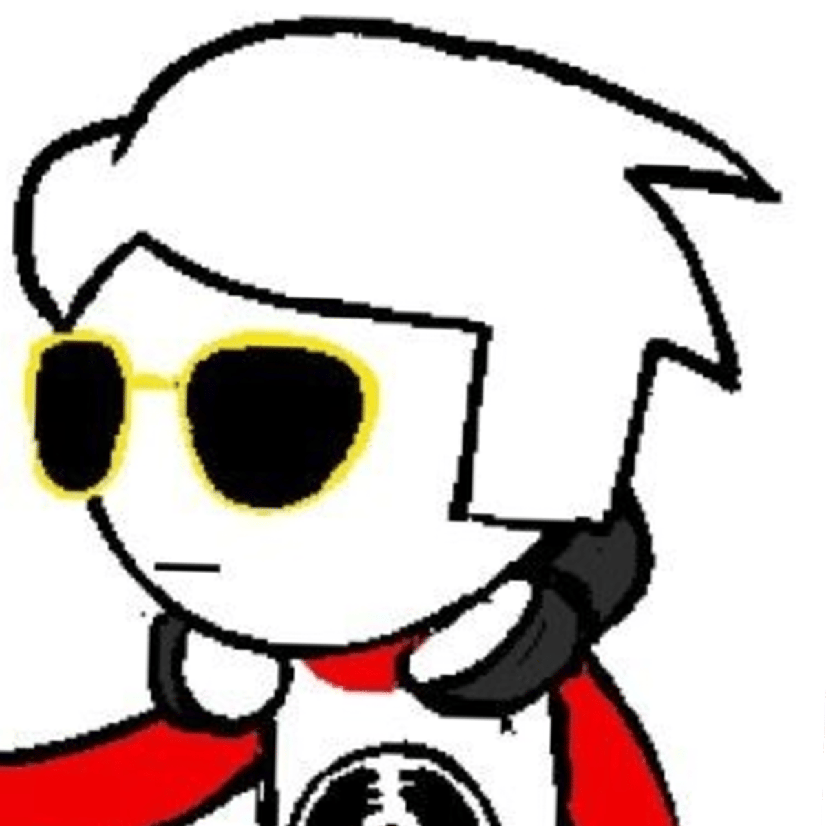 dave strider is a ironic cool guy wearing shades for compleatly ironic reasons.he showes interests in music,rapping,irony and apple juice. he wears a long red sleeved white shirt with a broken record on it.