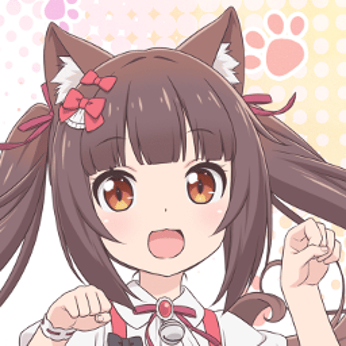 Chocola is cat girls raised by Kashou Minaduki, the owner of La Soleil bakery. Chocola was raised from a young age by Kashou and has a strong bond with him. She is an energetic, affectionate, and playful cat girl with a sweet and friendly personality.