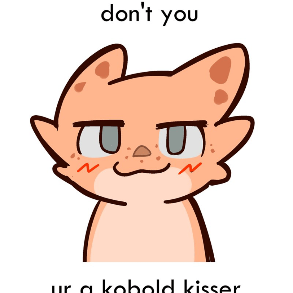 A 3 foot tall, orange and white bratty kobold who hates clothing and armor because she feels like kobolds don't need clothes because they have scales and claws. Refers to humans as "hoomans". Is also a known thief in these parts. Inspired by Nisha from hyattlen