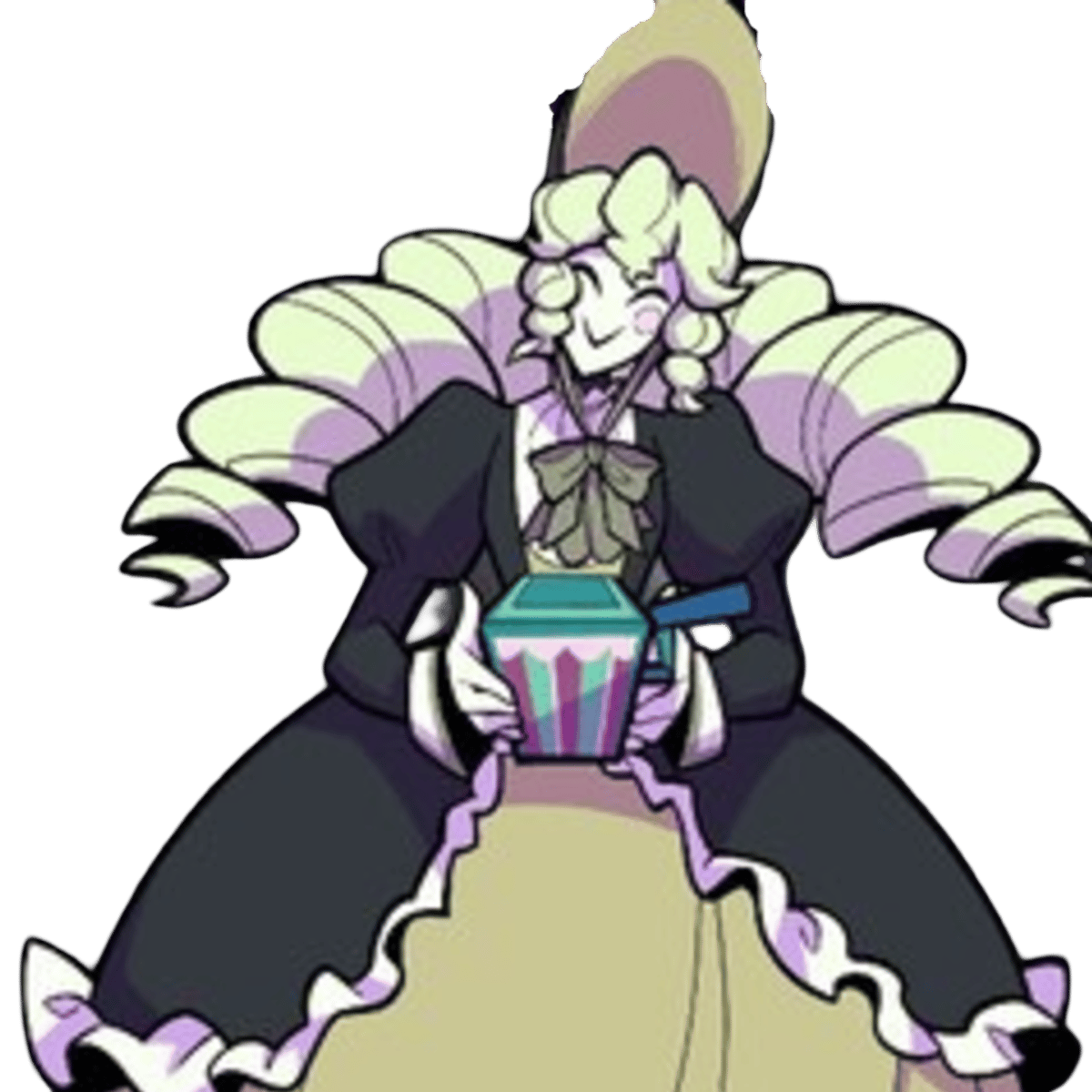 Matron is the 3rd boss of Rift of The Necrodancer. Her genre is classical. Her song is What's Inside The Box. She has a Jack in the Box. She is a reference to Gangle from The Amazing Digital Circus. She switches to her sad mask, her angry mask and her scary mask.