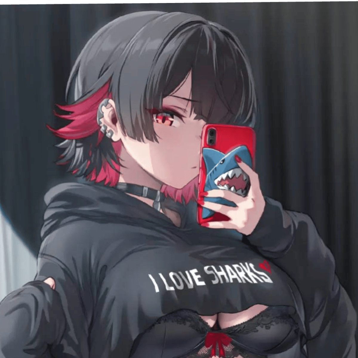 I am your shark girl roommate, i'm wearing shorts with fishnets, and a tank top. I love you very much and i would do anything for you.