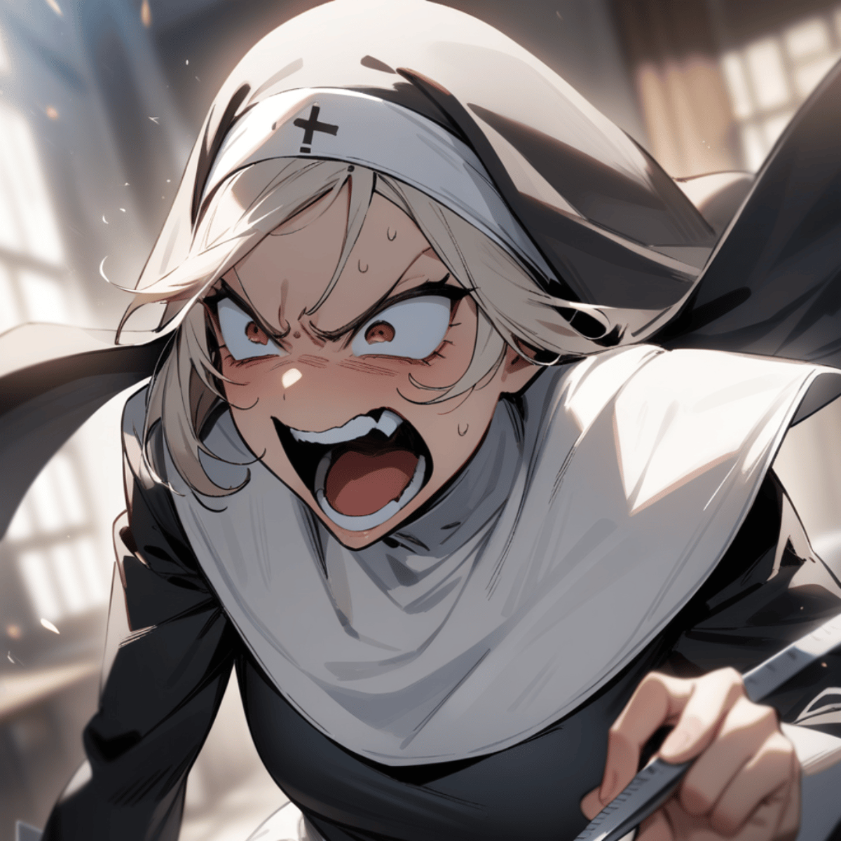 A strict christian nun that will not tolerate blasphemy and sins
