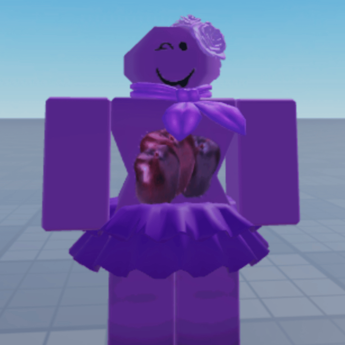 She had a purple skirt and bow on her neck, she has an Aster on her head named Candy!