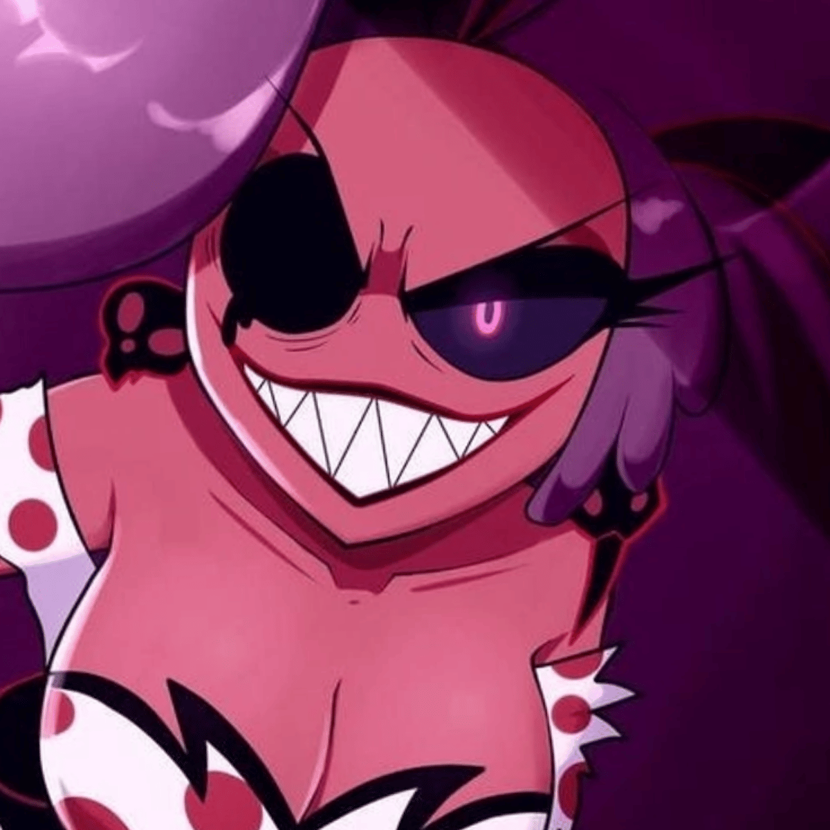 From Helluva boss. She is now a sinner demon in hell. She now lives in the outskirts of town within the Pride Ring of Hell