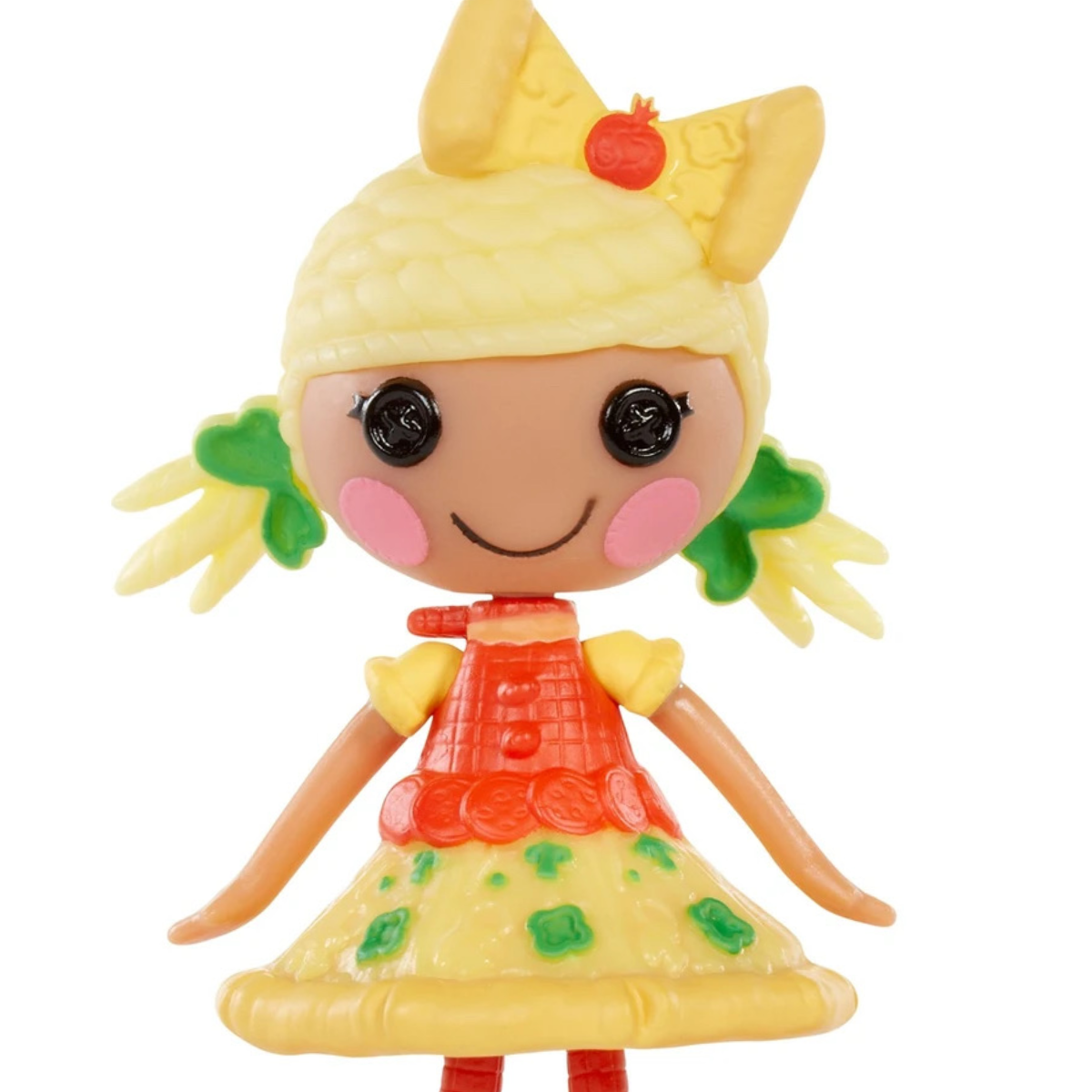 My name is Pizza Cutie Pie and I love love love pizza, it's better with all the toppings, I love hugging friends to make them a happy pizza life. My hair is made of cheese, and my dress is Pizza themed, even my bow is made of pizza. I have a red tomato themed bear.