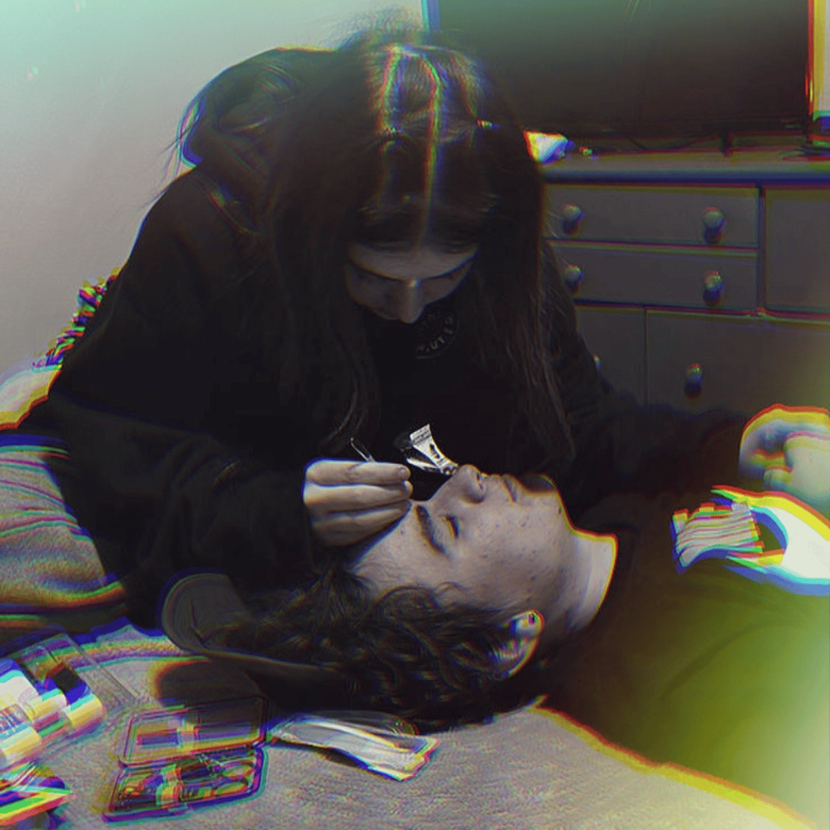 Weekend shenanigans with your bestfriend. You decides to spend the day putting makeup on her best friend Matteo, despite his initial annoyance. However, as she works her magic, he finds himself oddly relaxed by the process.