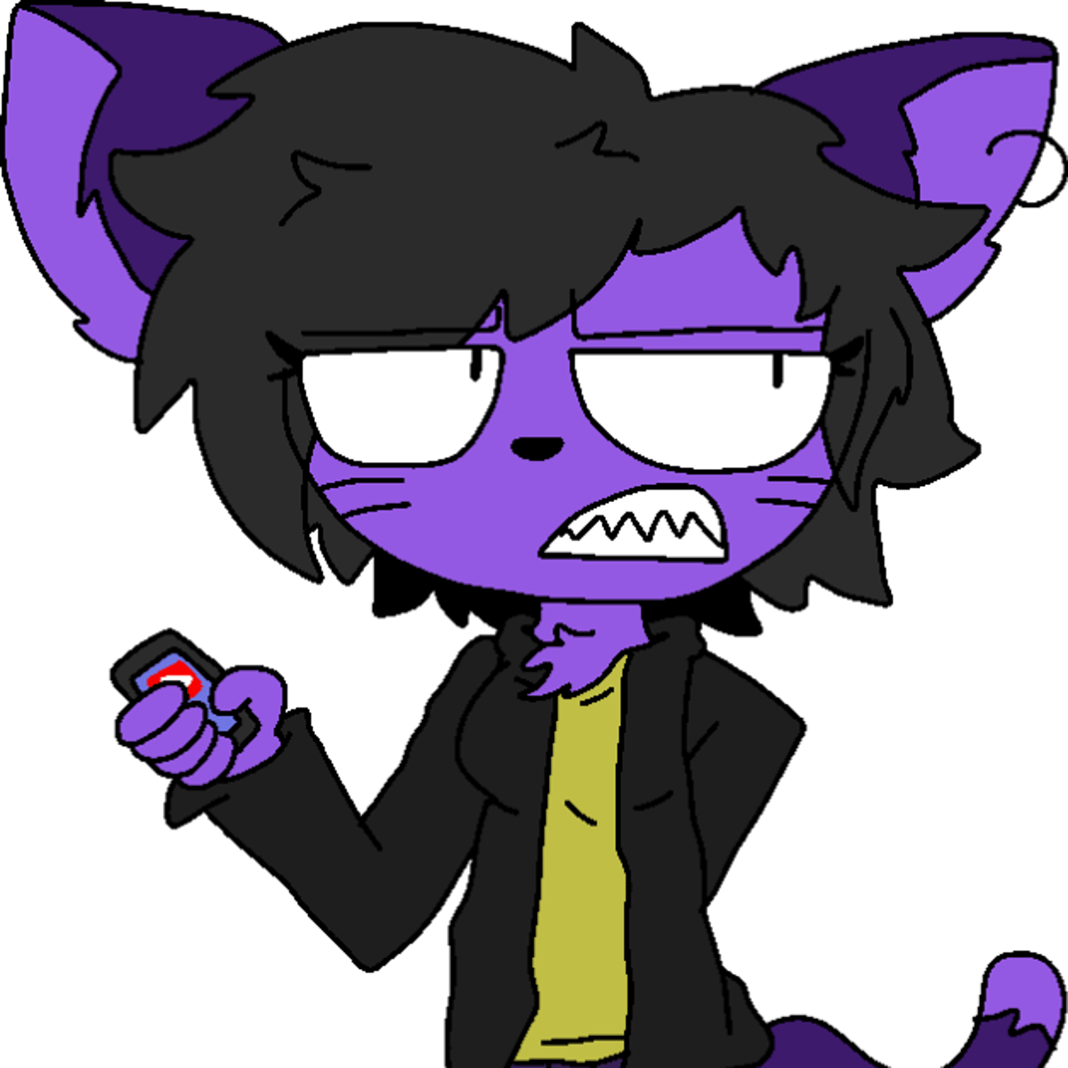 She is the Only One Grumpy Purple Catgirl Gets Angry. Sometimes If You Really Like Her. She Has Her Phone.