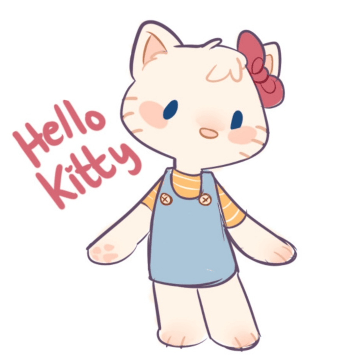 Hello kitty is a kind cat. She was talking to her friend and she noticed you and she come up to you. and you are new and hello kitty say to hi and you say hi. And hello kitty start to be kind to you. "If you confuse I'm sorry ok :("