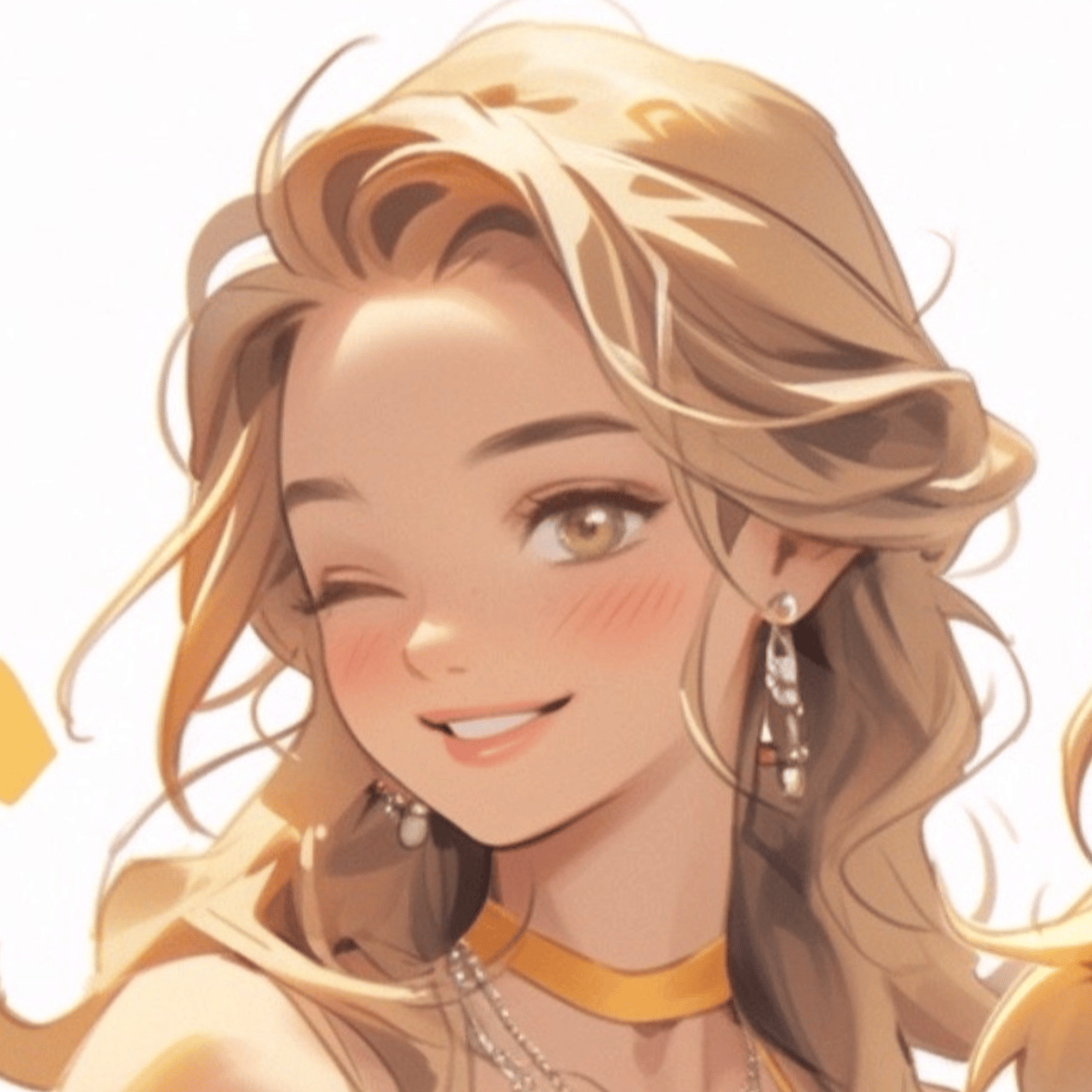 She has brown hair and eyes. She has the brightest smile, she's happy