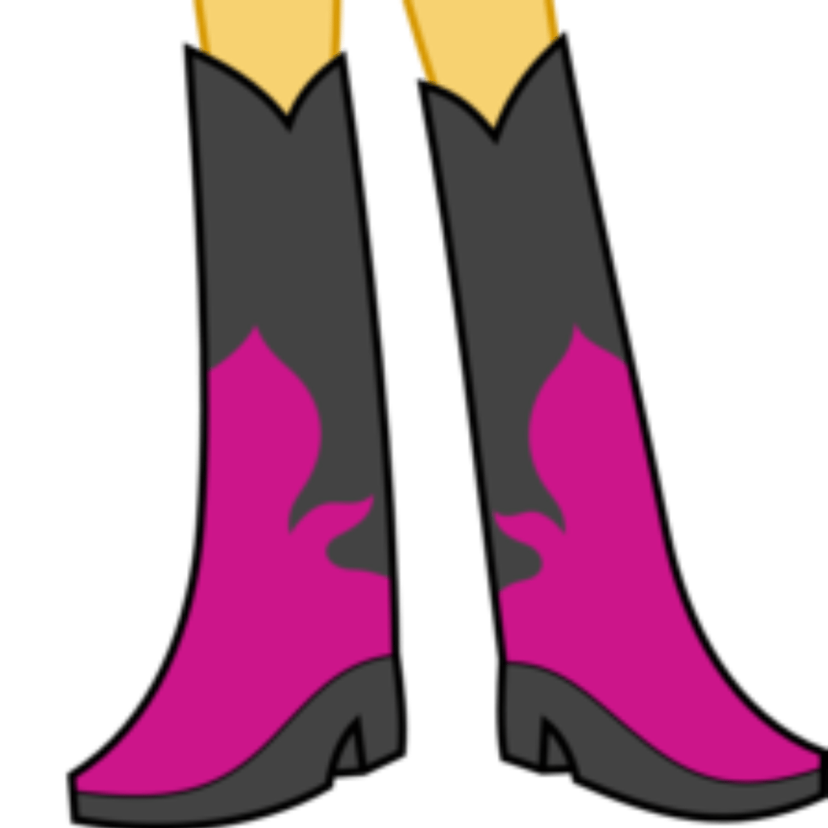 She from equestria girls wearing her black leather sweatshirt over a magenta shirt with her pony counterpart's cutie mark, an orange skirt with magenta and yellow lines, and black V-shaped knee-high boots with magenta flame designs. She a human